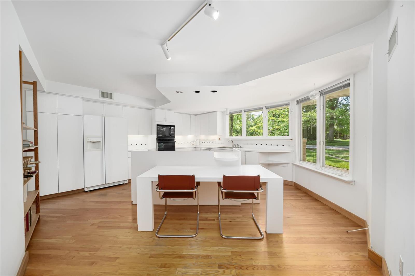 Embrace the potential of 5 Trails End Lane, a captivating modern fixer-upper nestled on a serene cul-de-sac. With its strong design features, this home is the perfect canvas for your renovation dreams, destined to become a statement of style on its stunning lot. An abundance of natural light floods through the expansive windows, illuminating the rich hardwood floors. The white eat-in kitchen boasts ample counter and cabinet space anchored by a center island. Large 1st-floor primary suite with three sides of windows, a spacious bathroom, and large closets. Two additional bedrooms and a full bath complete the main level. Ascend to the elevated office, granting panoramic views of surrounding nature--a truly unique space that fuels creativity. Walk-out lower level features a rec room and a third full bath, offering endless possibilities. Don't miss out on this exceptional opportunity in esteemed Ladue Schools. Your vision awaits! To be sold in as-is condition.